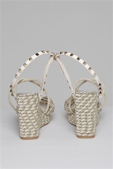 - Salto anabela inferior de altura elevada e inteiramente revestido por cordas metalizadas