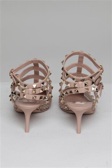 - Tiras triplas posteriores com pequenas fivelas metálicas laterais para fechamento