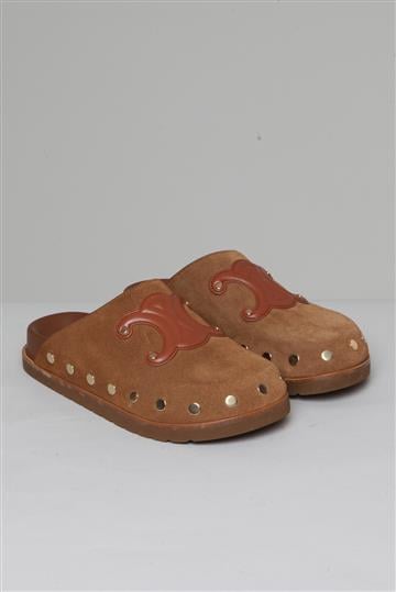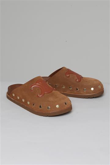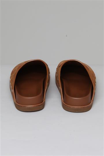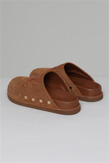 - Pequenas tachas circulares e metálicas aplicadas por toda a peça