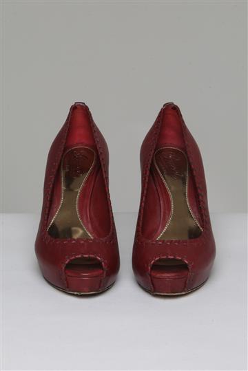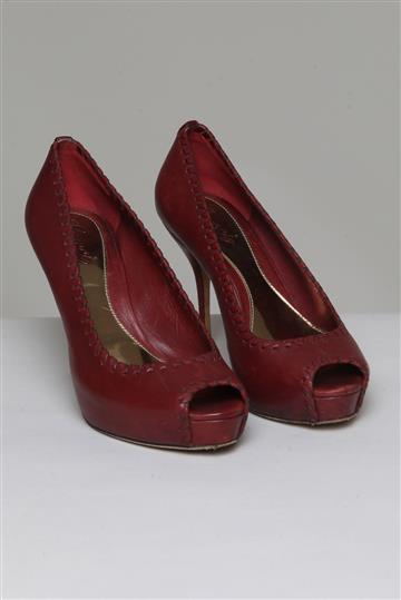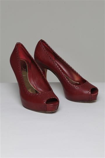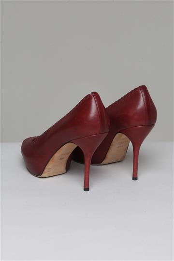 - Solado em couro liso com marcas de uso aparentes e leve desgaste frontal