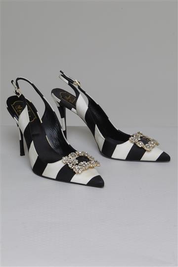 - Bico fino frontal com fivela superior inteiramente cravejada por pedrarias
