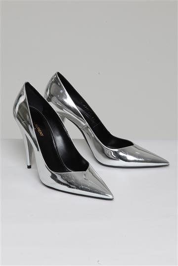- Scarpin em couro envernizado metalizado