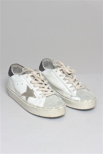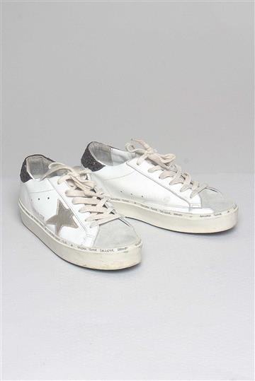 - Tênis em couro e camurça