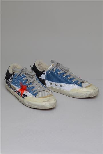 - Tênis em veludo com detalhes em gorgurão e pelo sintético