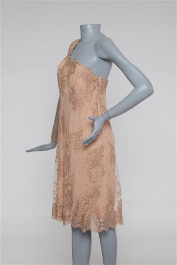 Vestido Walter Rodrigues Midi Renda com Echarpe Bege