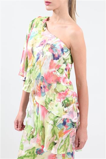 - Decote trapézio com gola alta drapeada ajustada ao pescoço