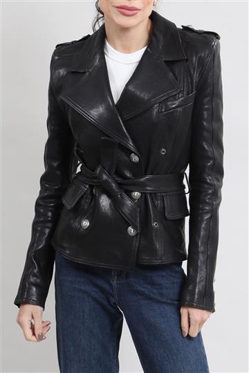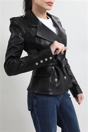 Jaqueta Balmain Couro Botões e Cinto Preto