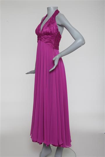 Vestido Longo Decote Drapeado Rosa