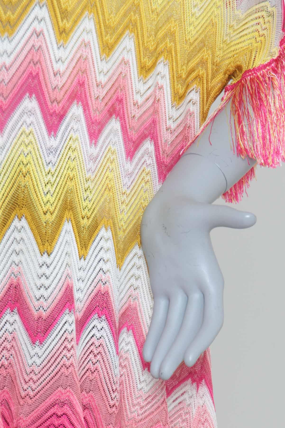 - Mangas curtas com aplicação decorativa de franjas na barra
