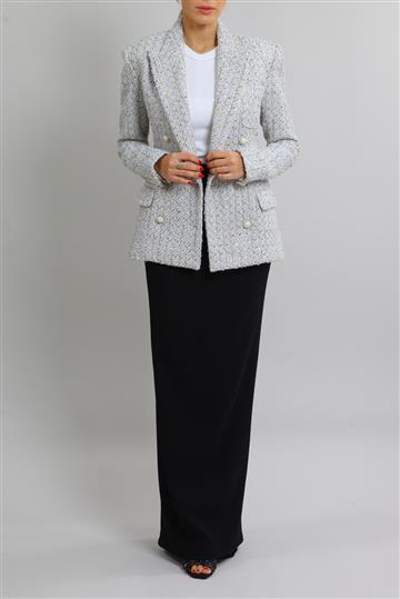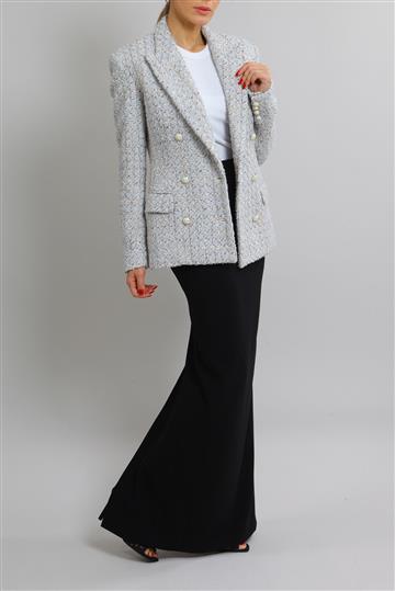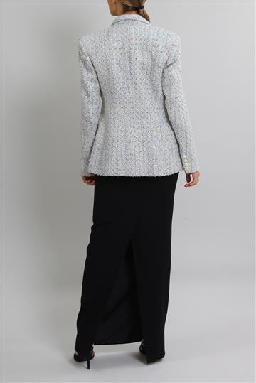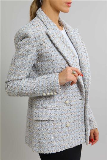 - Blazer em bouclê texturizado com fios metalizados aplicados à trama