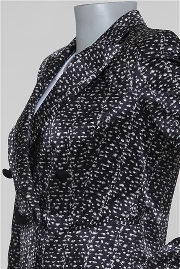 - Decote alongado e transpassado em 'V' com lapelas clássicas
