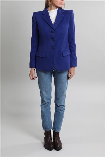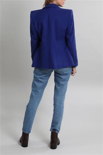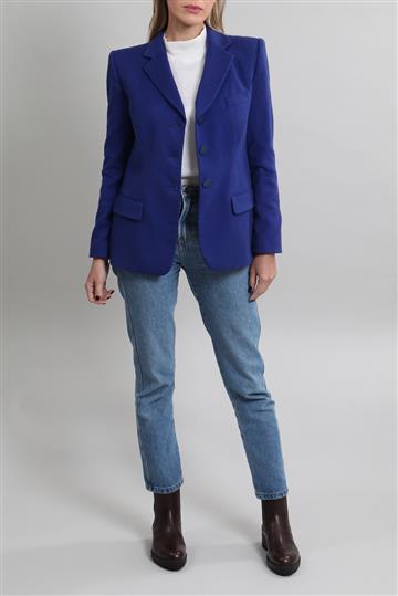 - Fechamento frontal por abotoamento triplo com botões decorados