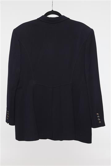 - Fechamento frontal por abotoamento com botões ornamentados.