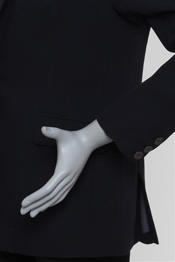 - Mangas longas retas com abotoamento lateral