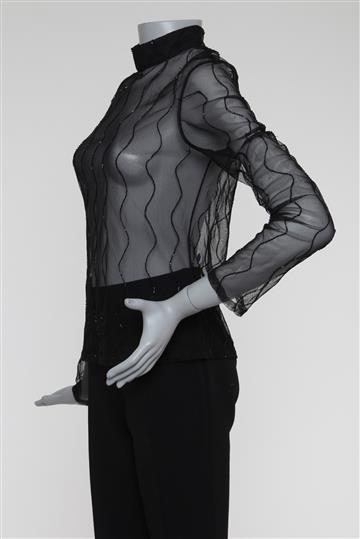 - Gola alta arredondada com abotoamento posterior para fechamento