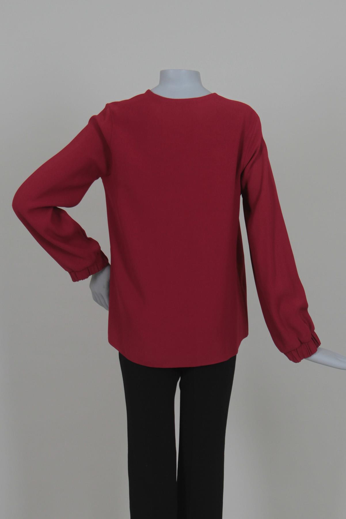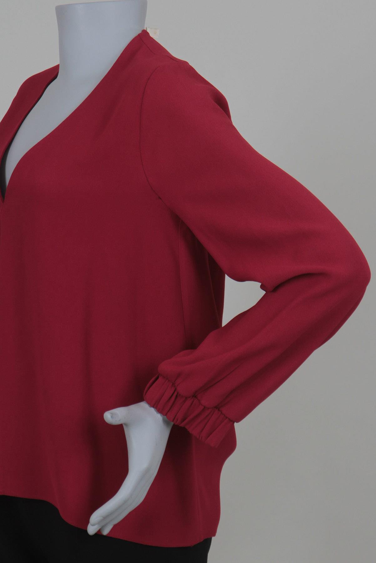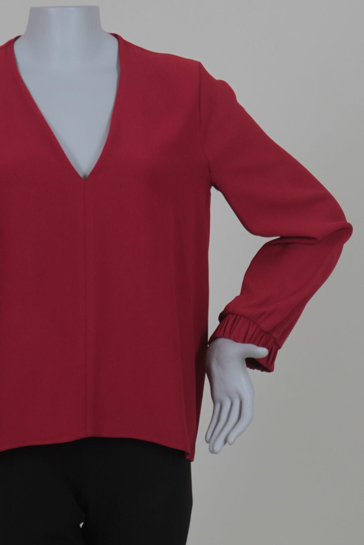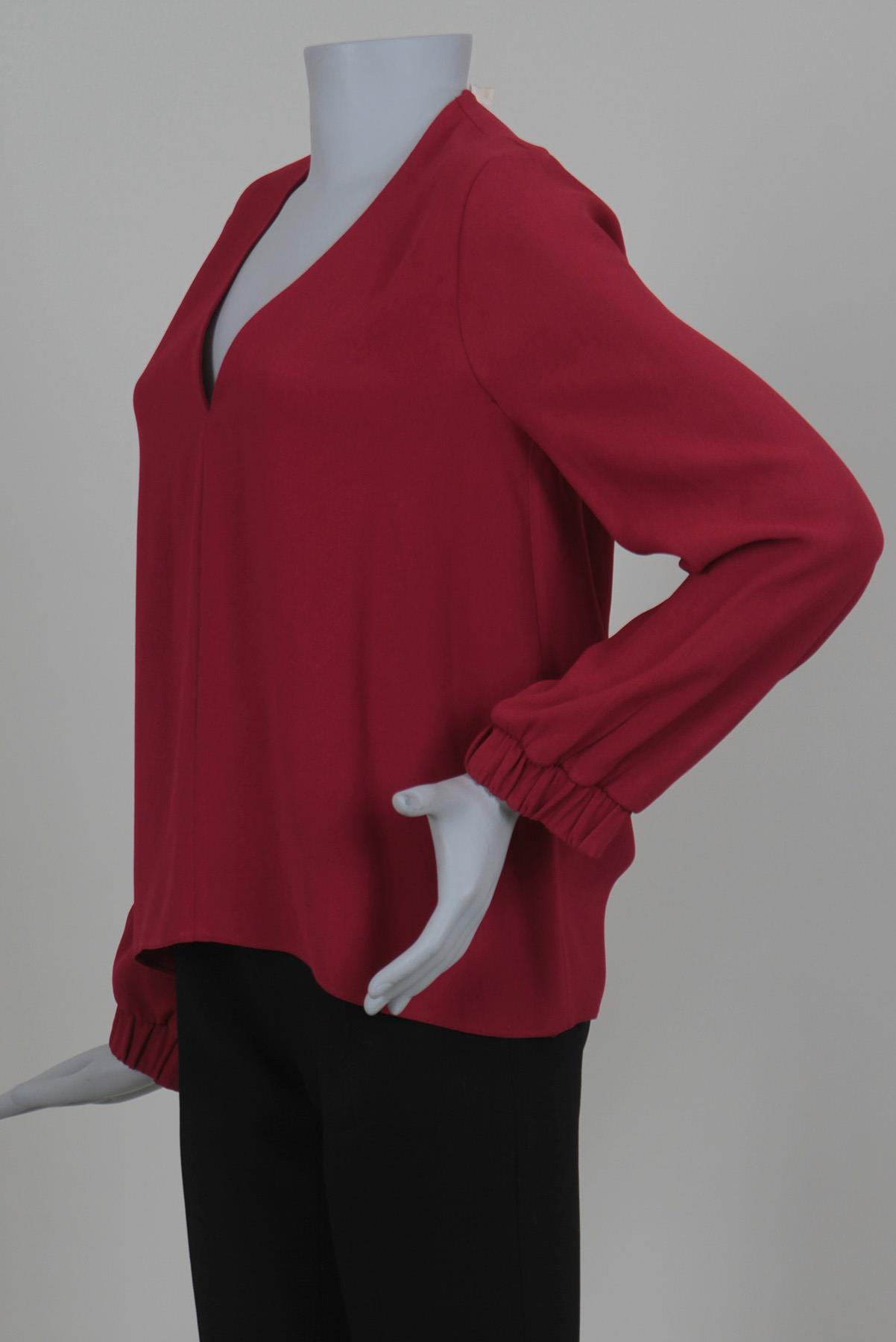 - Blusa em acetato- Vermelho cereja- Decote em 'V' amplo- Barra mullet- Mangas longas com punhos elásticos.