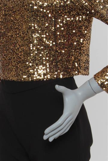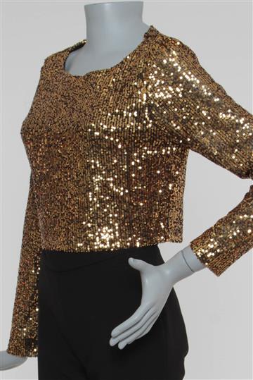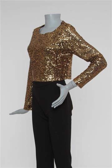 - Cropped em tecido leve revestido por paetês