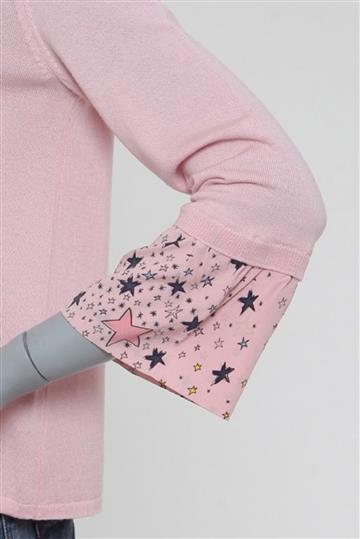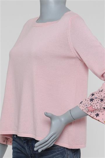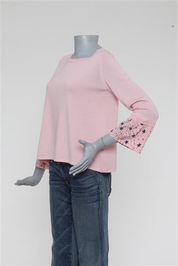 - Mangas 3/4 retas com punhos pregueados e estampados