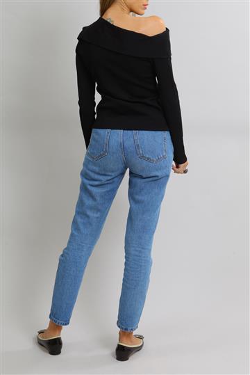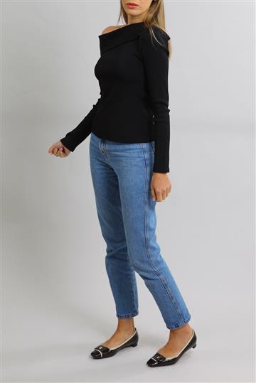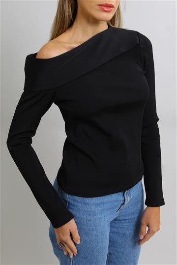- Decote ombro à ombro assimétrico com pala ampla aplicada ao redor
