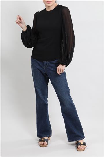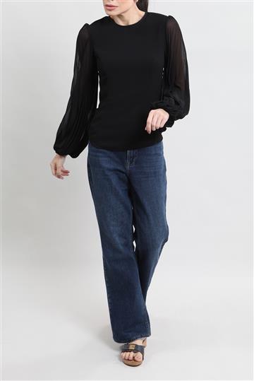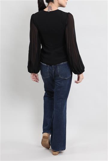 - Mangas longas plissadas e bufantes com pregueado duplo