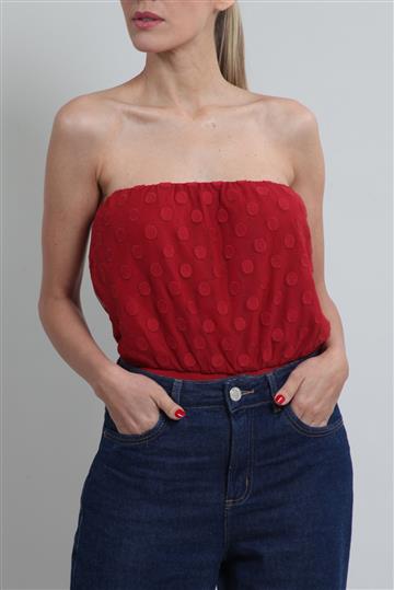 - Decote reto estilo tomara-que-caia com elasticidade interna