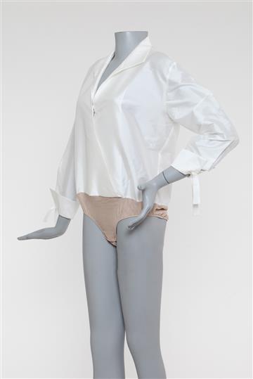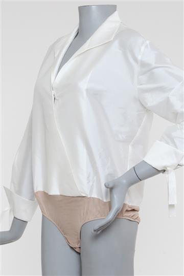 - Body em tecido encorpado à base de poliéster