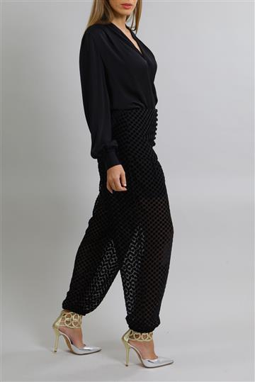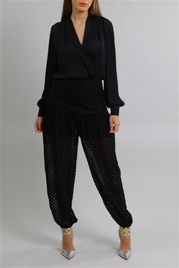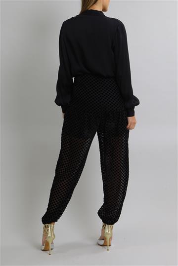 - Modelagem reta e ligeiramente ampla estilo jogger