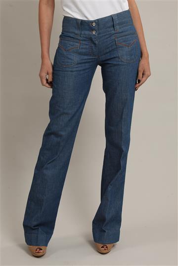 - Modelagem reta e ligeiramente ampla estilo flare