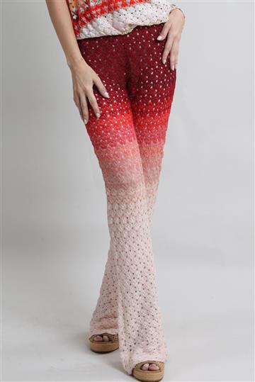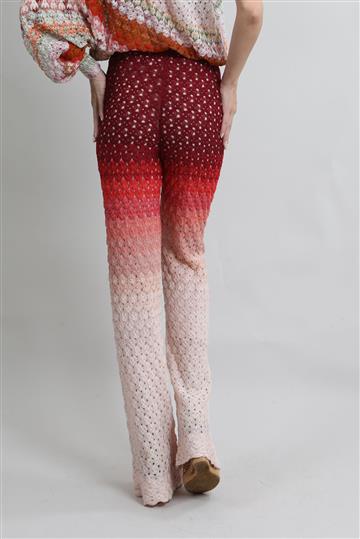 - Calça em tricot leve com fios de lurex aplicados à trama