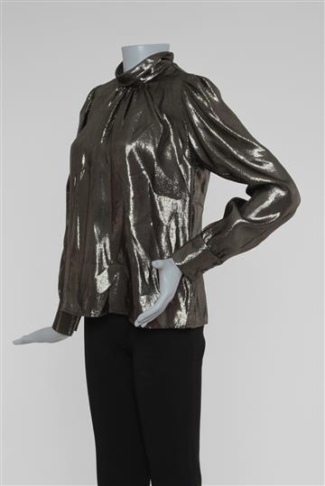 Camisa Valentino Seda Manga Longas com Amarração na Gola Lilás