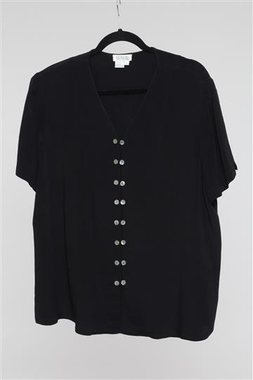 - Fechamento frontal por abotoamento duplo com botões de madrepérola.