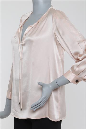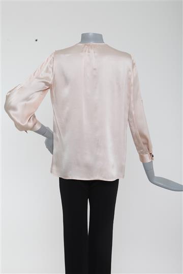 - Mangas 3/4 com pregas estilo fole centrais e pregueado delicado inferior