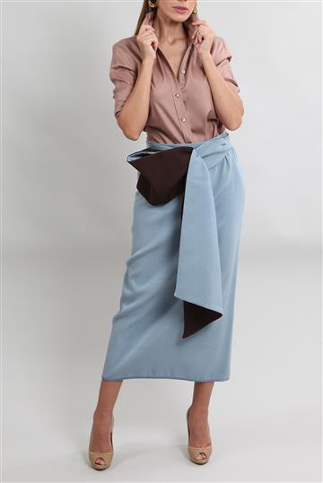 - Mangas longas retas com punhos estruturados e abotoamento lateral