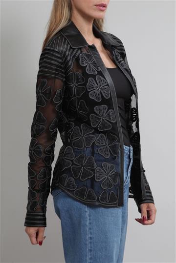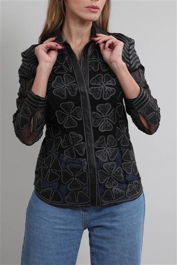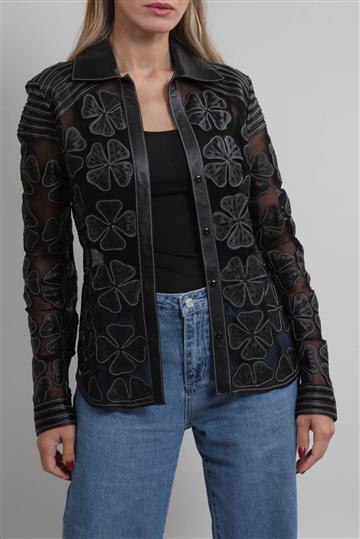 - Camisa em tule leve e couro macio