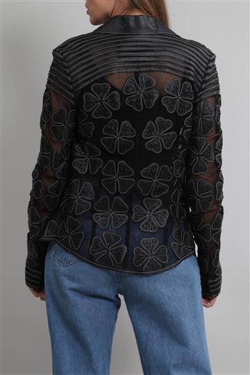 - Bordados decorativos de temática floral em couro