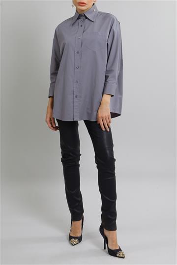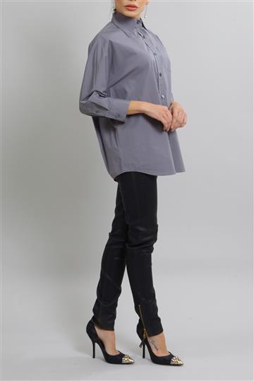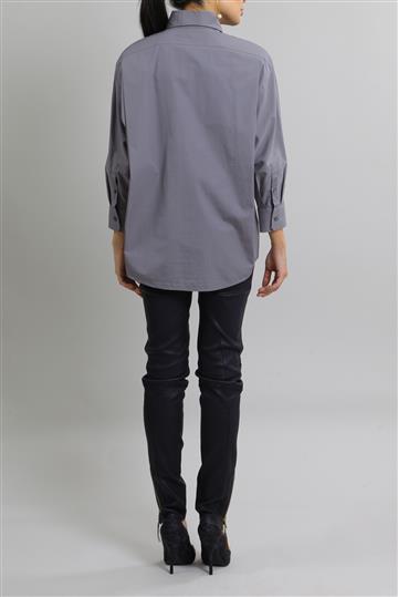 - Mangas 3/4 amplas com pala abaixo das cavas e punhos estruturados com abotoamento