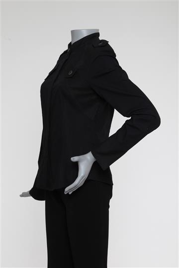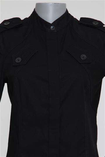 - Pespontos e recortes aparentes com abotoamento aplicado