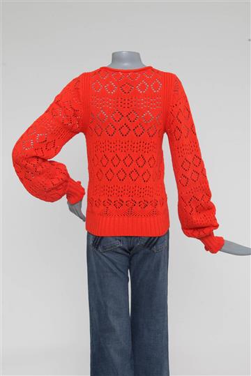 - Mangas longas ligeiramente bufantes com punhos ajustados