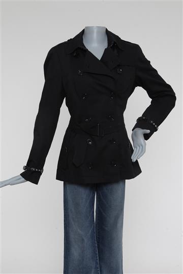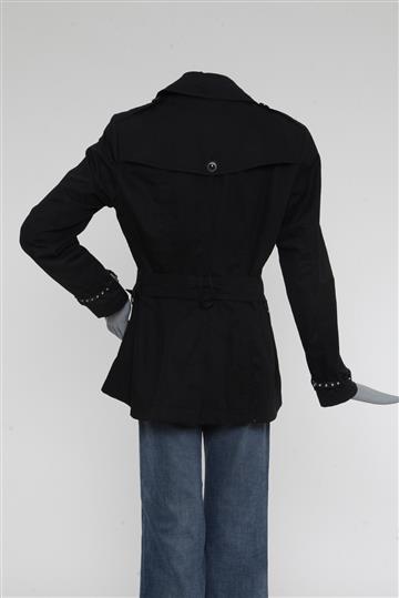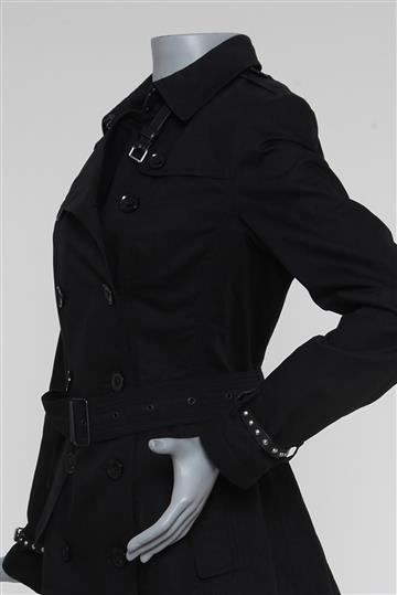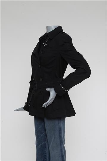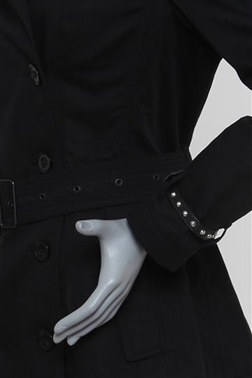 - Mangas longas com passantes laterais e cinto em couro com ajuste por fivela