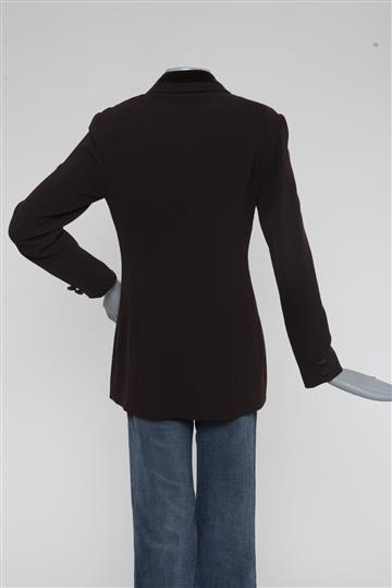 - Fechamento frontal por abotoamento com botões revestidos por veludo