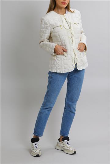 - Babados de gorgorão aplicados à abertura e ao barrado