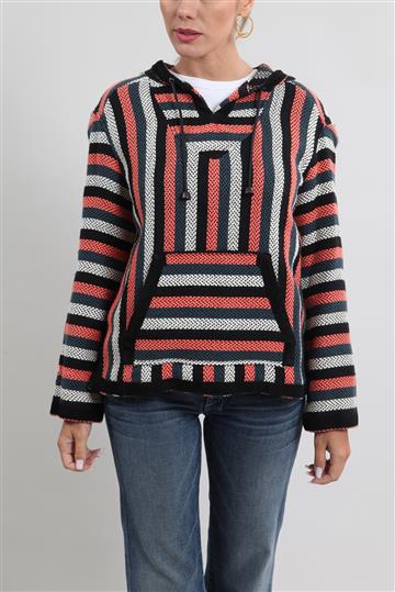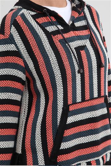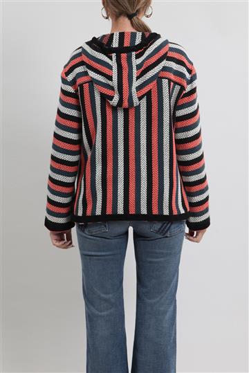 - Casaco em tricot tramado e encorpado com detalhes em camurça