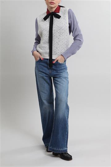 - Fechamento frontal por zíper metálico e abotoamento oculto