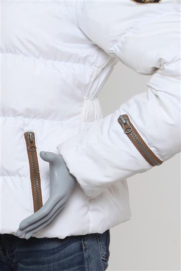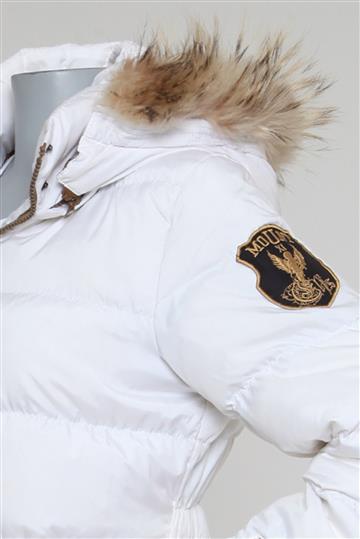 - Capuz removível superior com pêlos aplicados por toda a volta