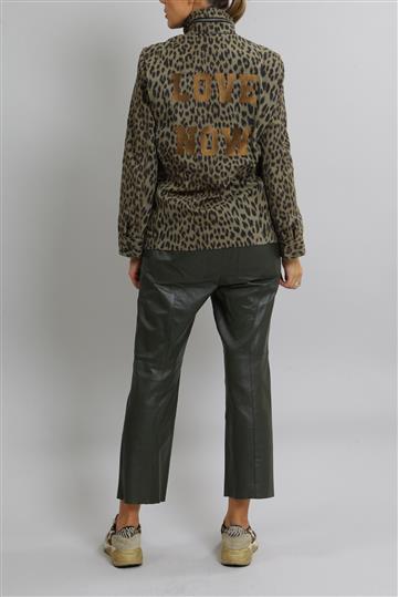 - Fechamento frontal por zíper e abotoamento ocultos sob a vista central da peça
