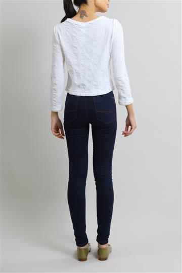 - Casaqueto em malha texturizada e com boa elasticidade à base de viscose