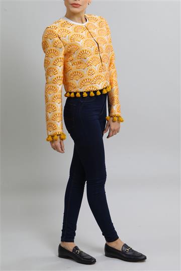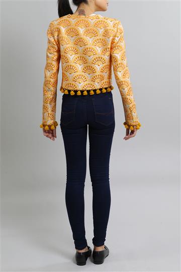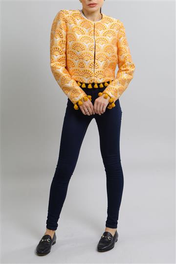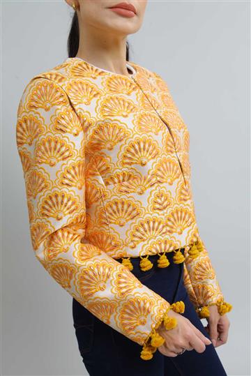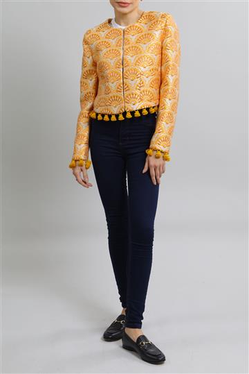 - Casaqueto em jacquard encorpado com fios de lurex aplicados à trama