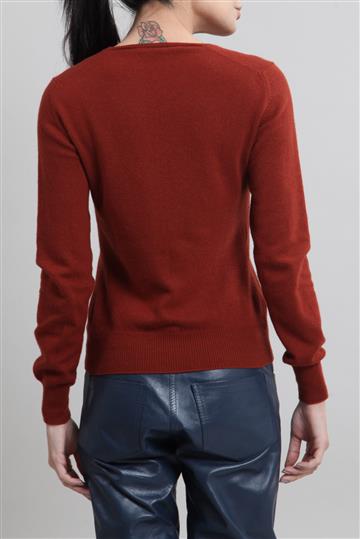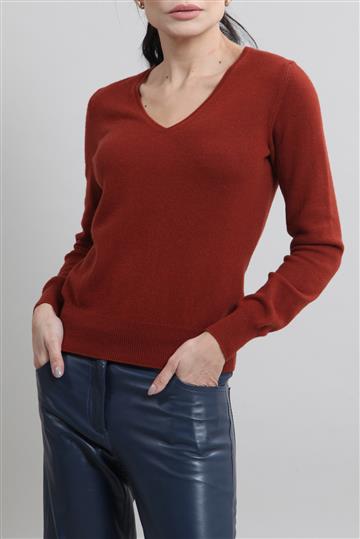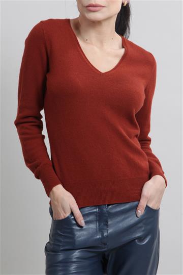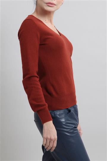 - Decote amplo em 'V' com gola canelada de espessura reduzida