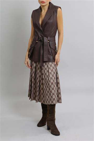 - Decote alongado em 'V' com lapelas de pontas duplas