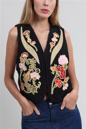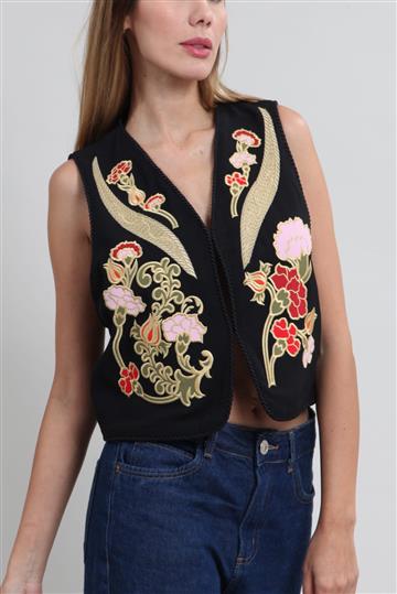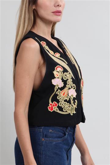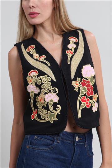 Colete Cris Barros Bordado Curto Preto